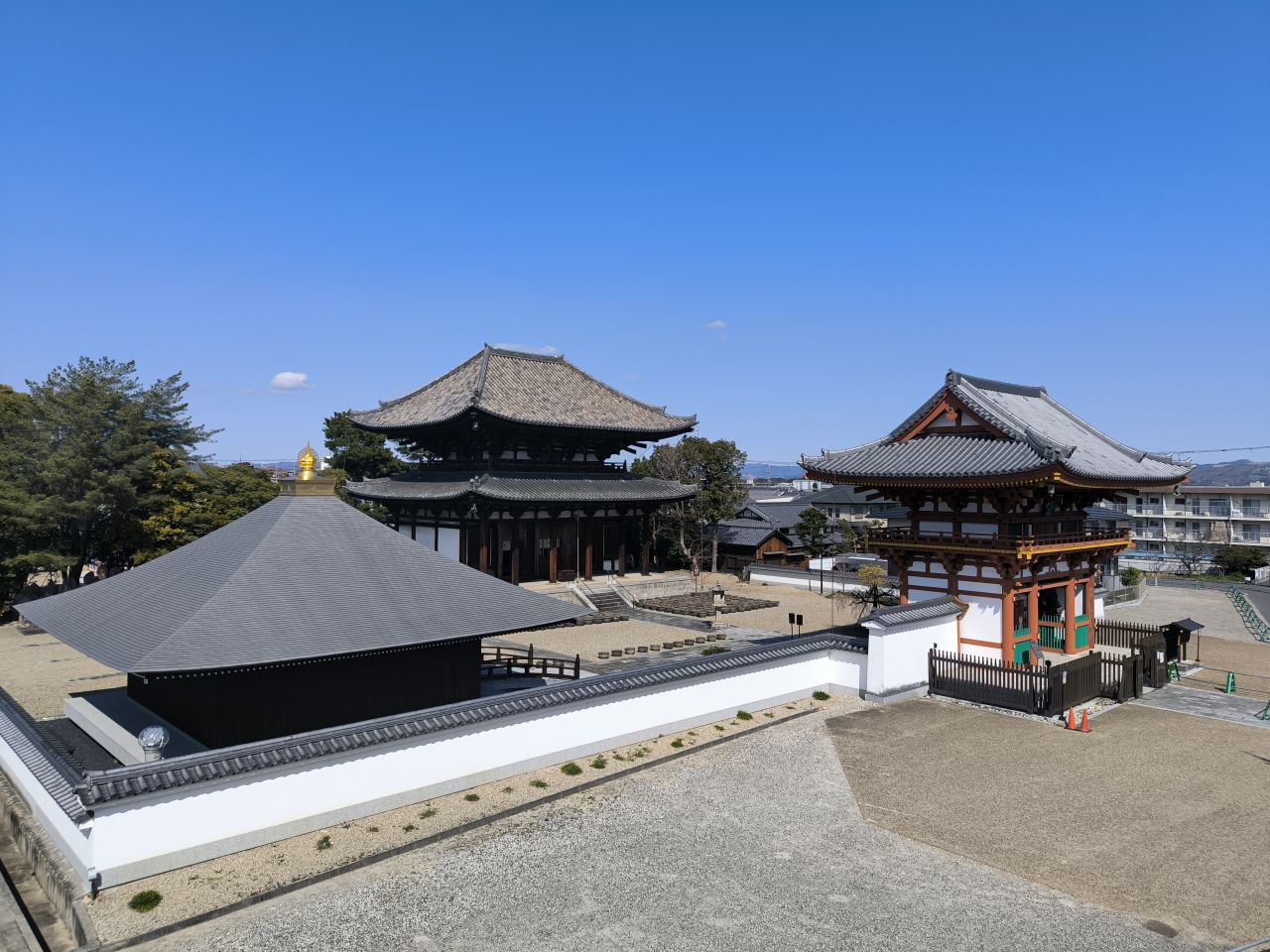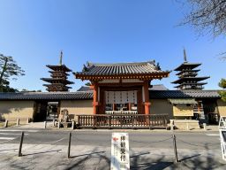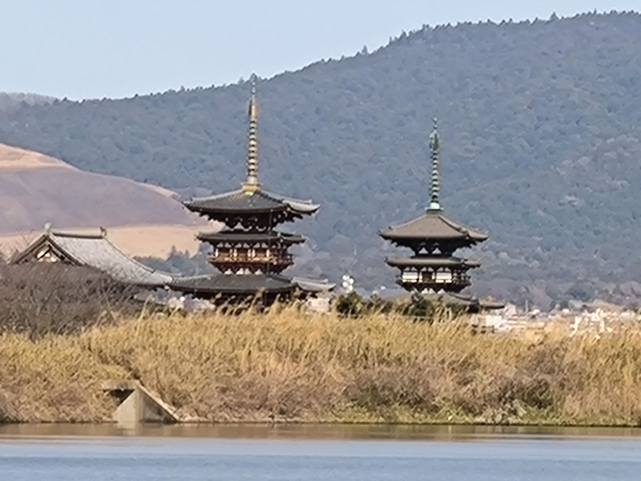 | 大池から撮影した薬師寺 | 正面に着いてから撮影 |