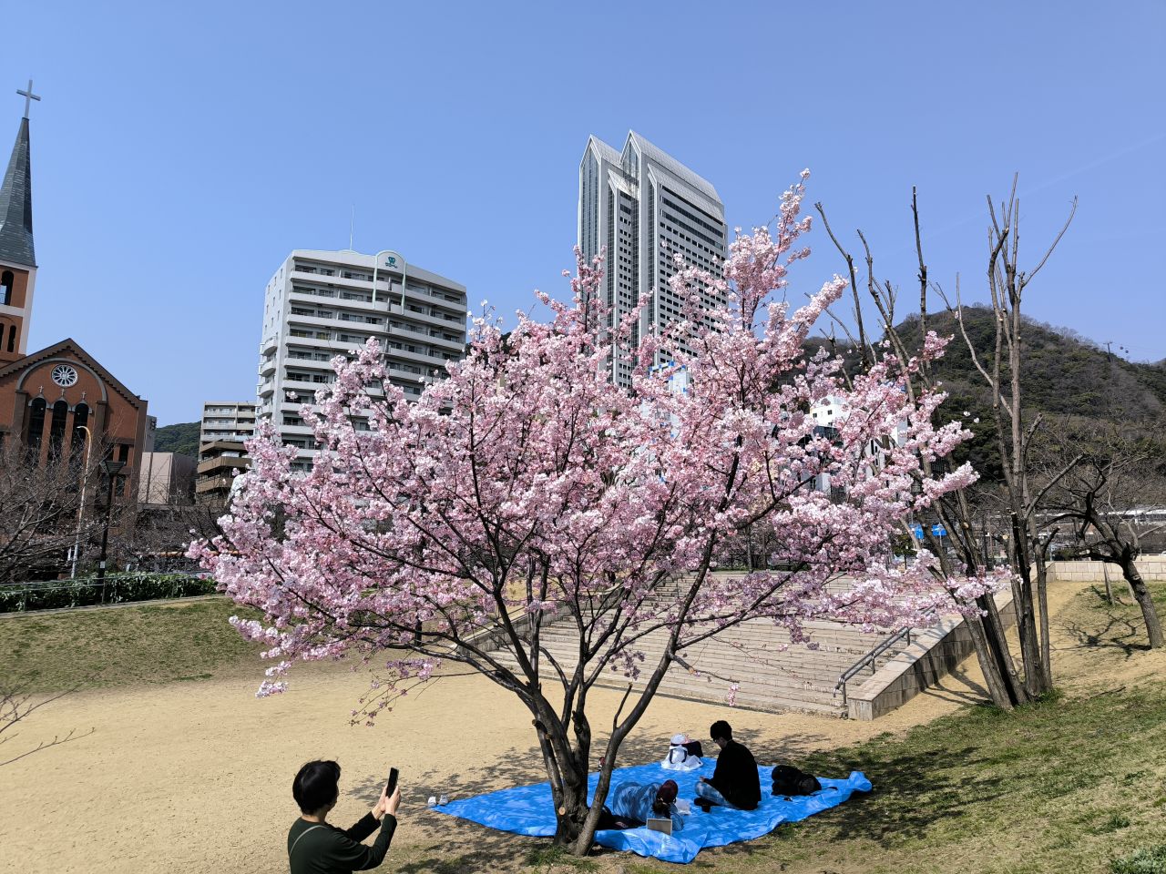 花見を楽しんでいますね |